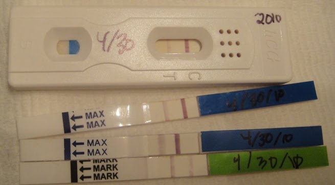 So, what do you think? Are you surprised? I sure was. My first thought was "is this even possible? No...no it's not. So then why on earth are there two lines?" I went to the doctor that very day to have my hCG drawn, because I needed someone to confirm that I wasn't losing my mind. At 12DPO (4/27), my hCG was 50 mIU/ml and my progesterone was 22 ng/ml. Not bad for 12DPO, and it confirmed that I really am pregnant (and due 1/6/11). But that's when the fun started... Because two days later, at 14DPO, my hCG had now risen to 178 mIU/ml (and my progesterone was up to 23.2 ng/ml). That's a doubling time of 26.20 hrs (normal doubling time is approx 48 horus). That was really shocking, to say the least.